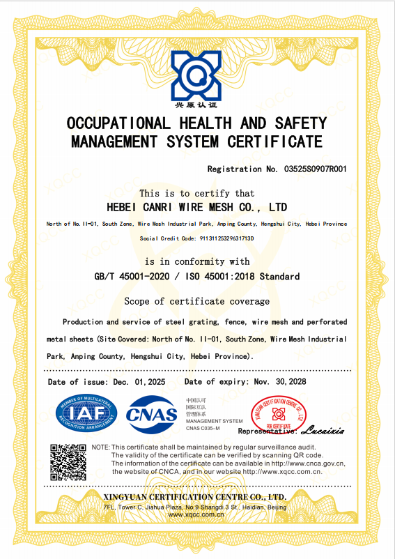 HEBEI CANRI WIRE MESH CO.,LTD is a 15 years factory specializing in manufacturing and supplying steel gratings, drain gratings, stair tread, handrails, Singapore gratings and other metal works. Because of the diversity of our products, we could supply the overall solution for the industrial platforms.
